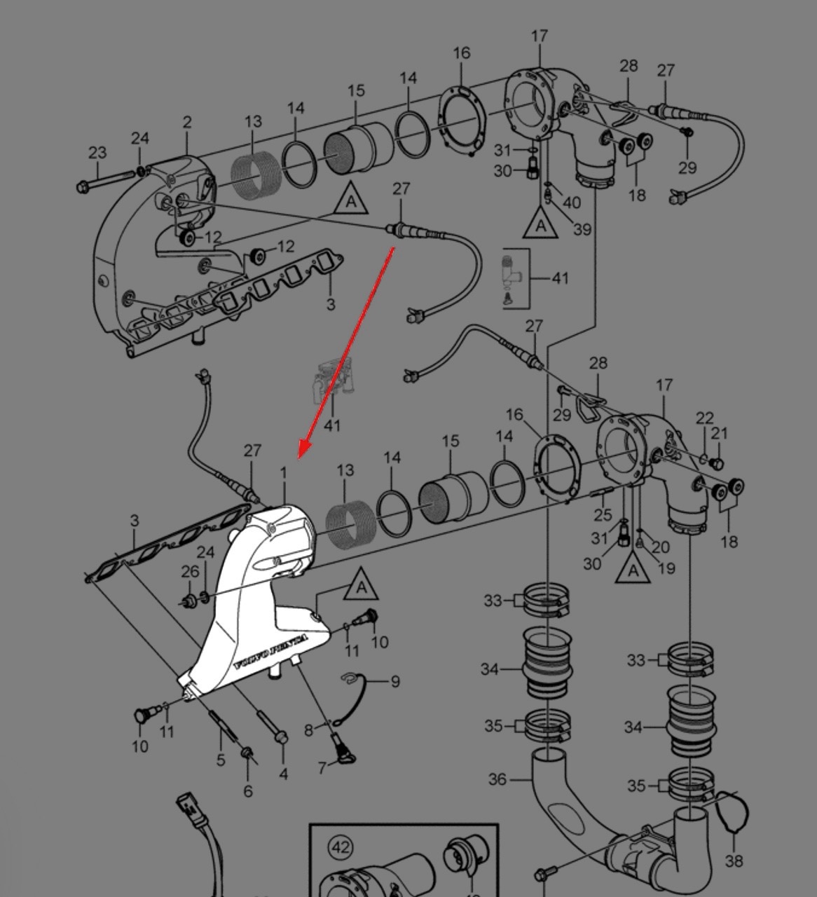 Original Volvo Penta 8.1L Catalyzed center-rise exhaust manifold. This will ONLY work with Volvo Penta 8.1L engines (PORT SIDE).
