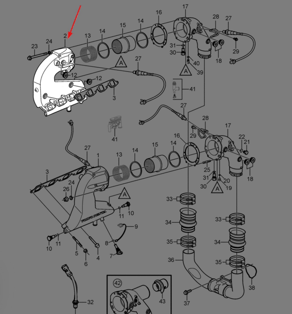 Original Volvo Penta 8.1L Catalyzed center-rise exhaust manifold. This will ONLY work with Volvo Penta 8.1L engines (STARBOARD SIDE).